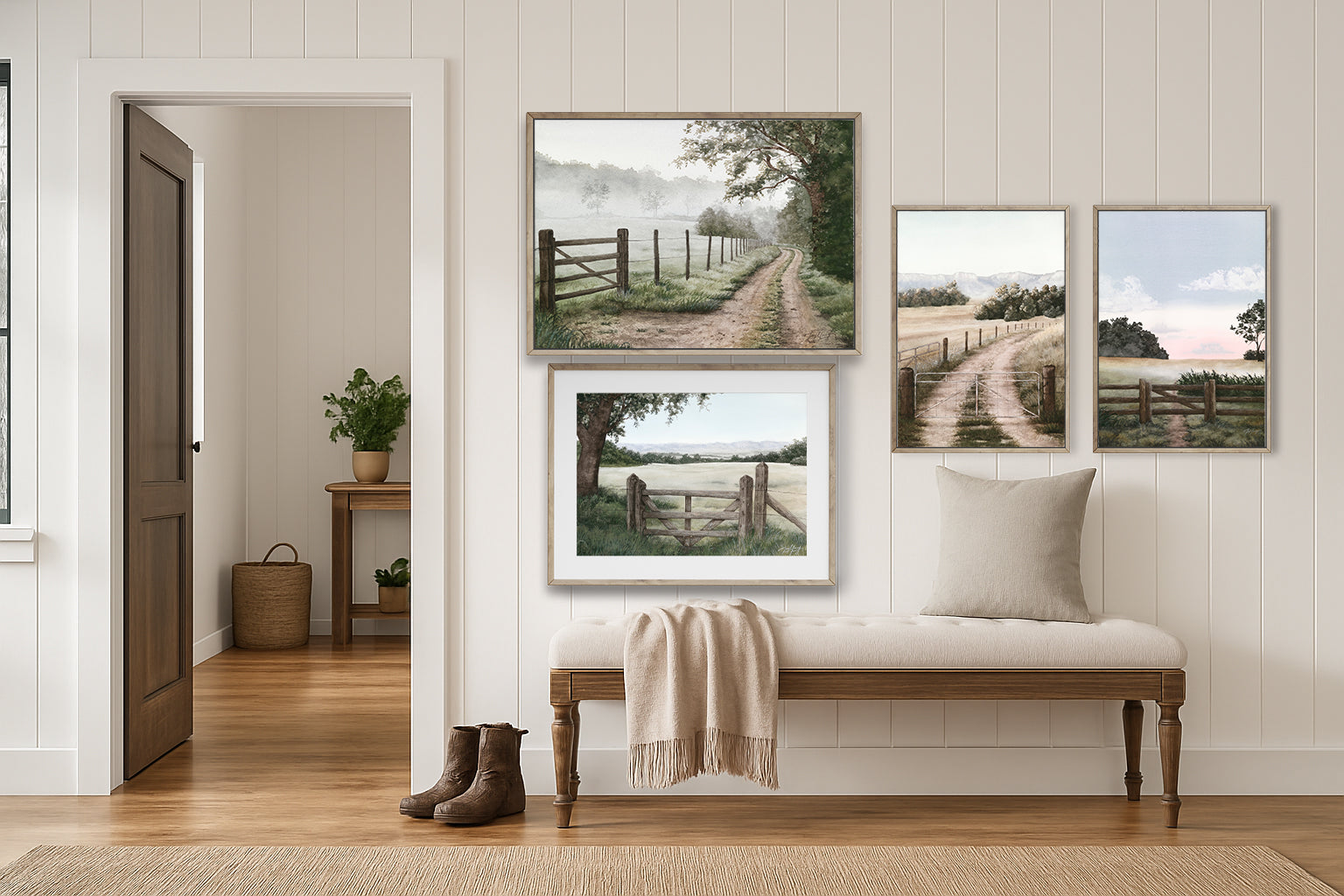 'Gates Through the Countryside' is a collection of calming landscape artworks inspired by these quiet landmarks. Each piece captures the slower pace of rural life—open fields, misty mornings, and the subtle beauty of spaces left untouched.